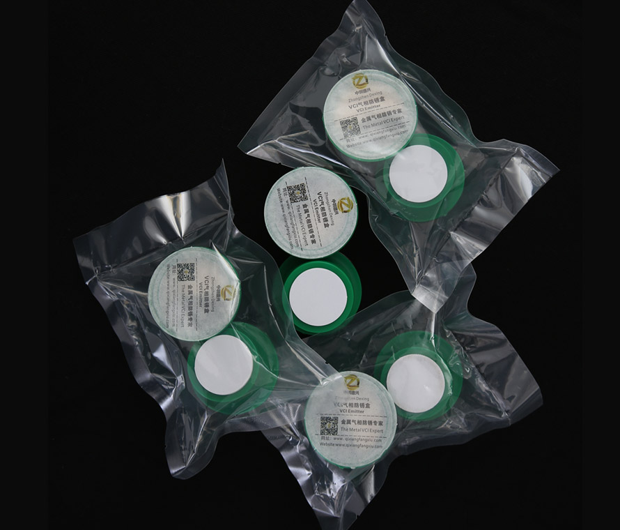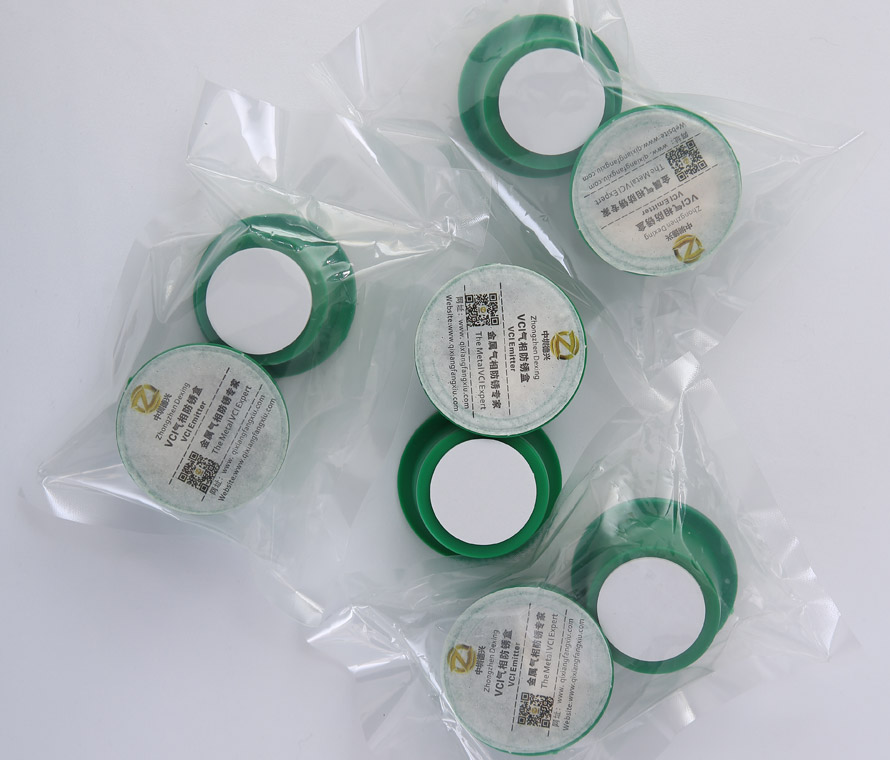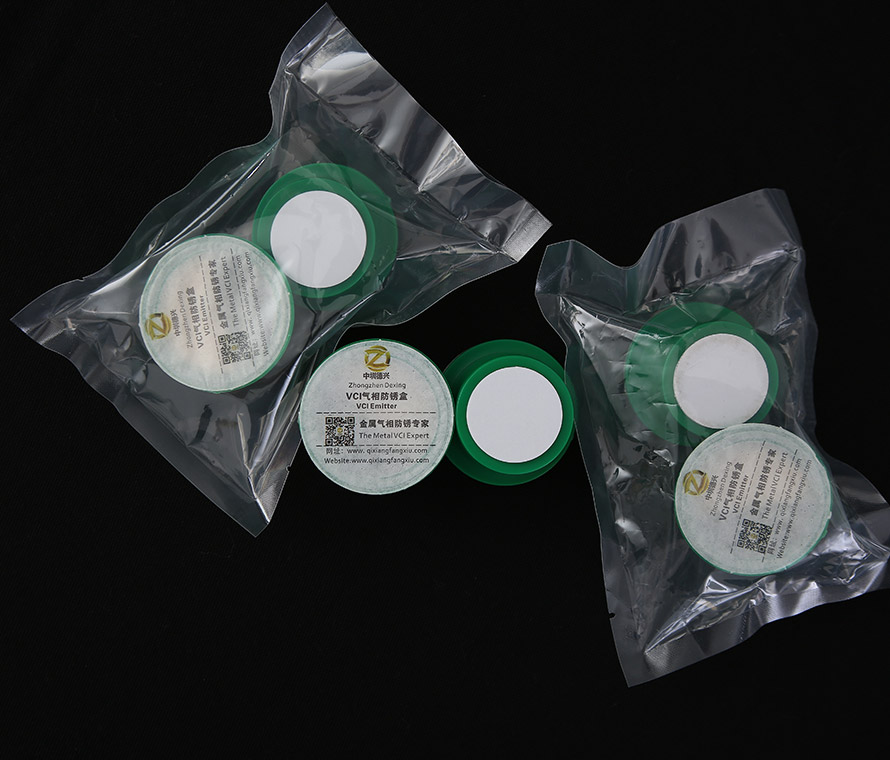 、防锈盒是一种很小的泡沫塑料盒,它带有一层可吸入的膜,通过这层膜,阻锈剂可以被缓慢地释放出来,同时,水蒸气和空气污染为可以进入并被吸收。即使在恶劣的环境中,它也能对盐、水蒸气、空气中传播的腐蚀物、化学腐蚀、以及其他腐蚀提供长期的防护。
